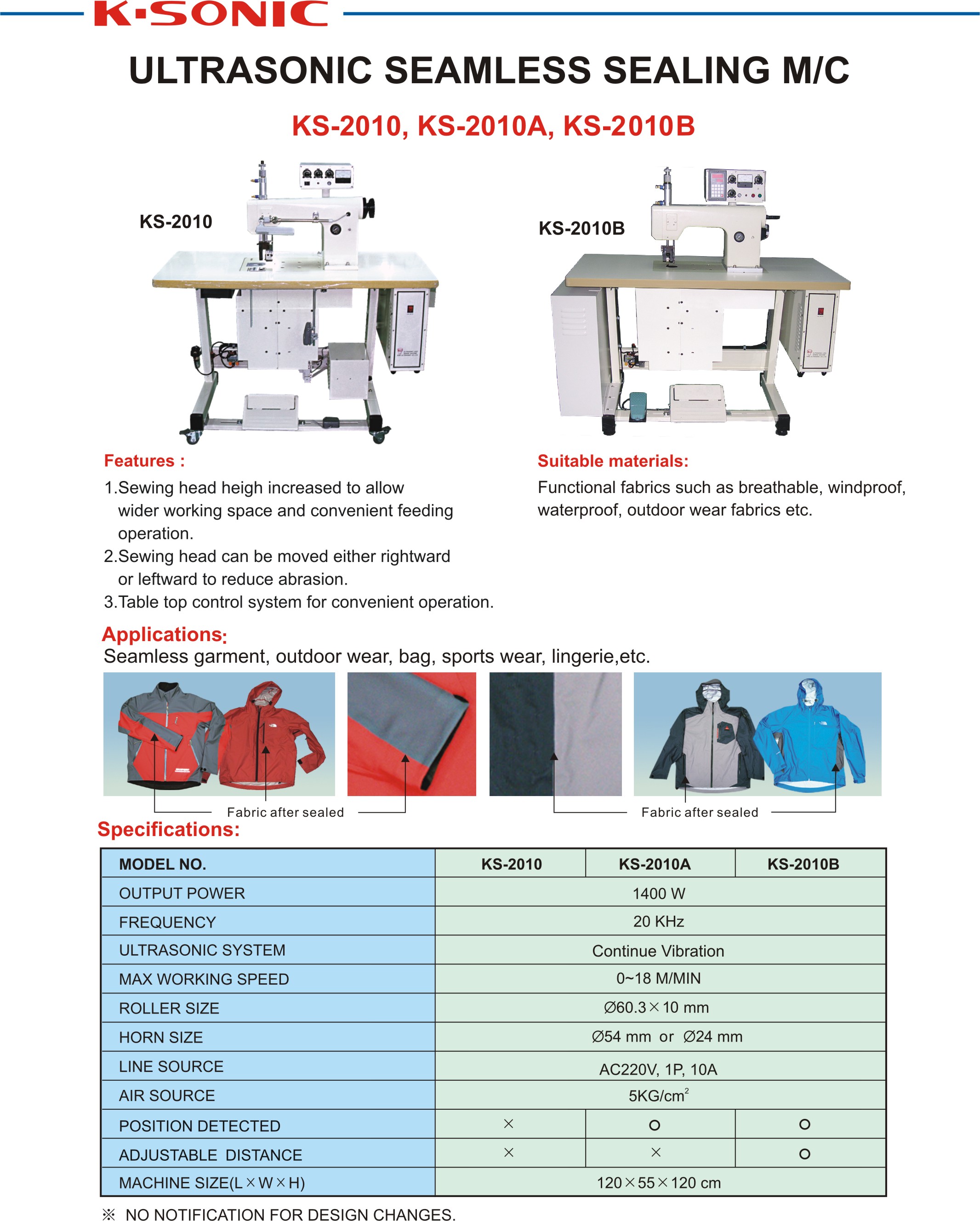 MODEL NO. | KS-2010 | KS-2010A | KS-2010B |